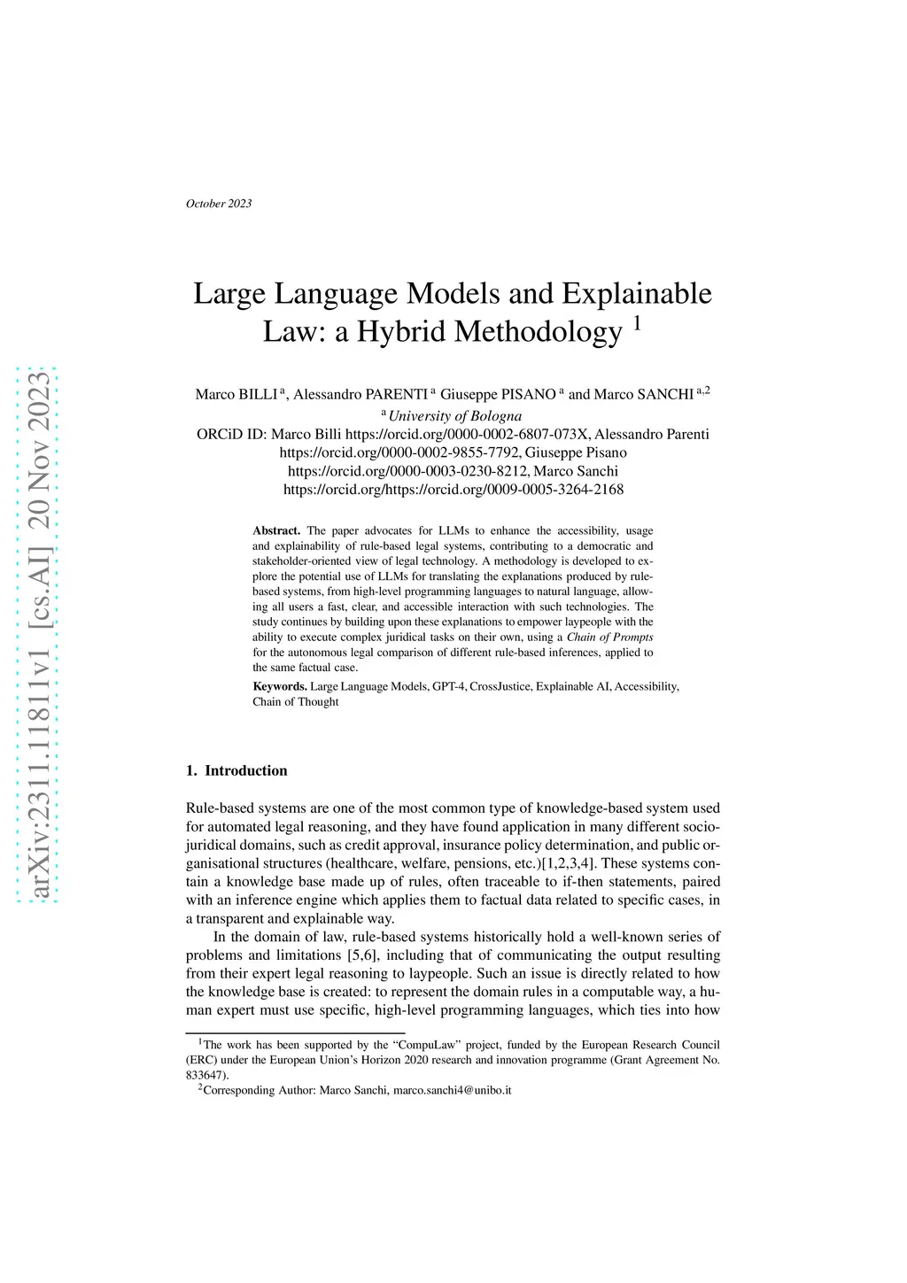 Large Language Models and Explainable Law: a Hybrid Methodology