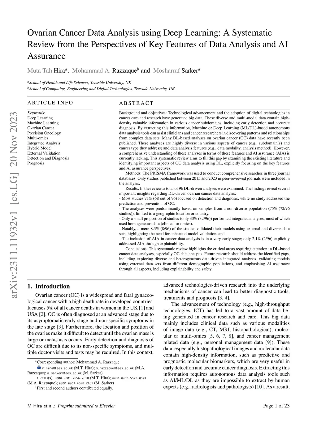 Ovarian Cancer Data Analysis using Deep Learning: A Systematic Review
