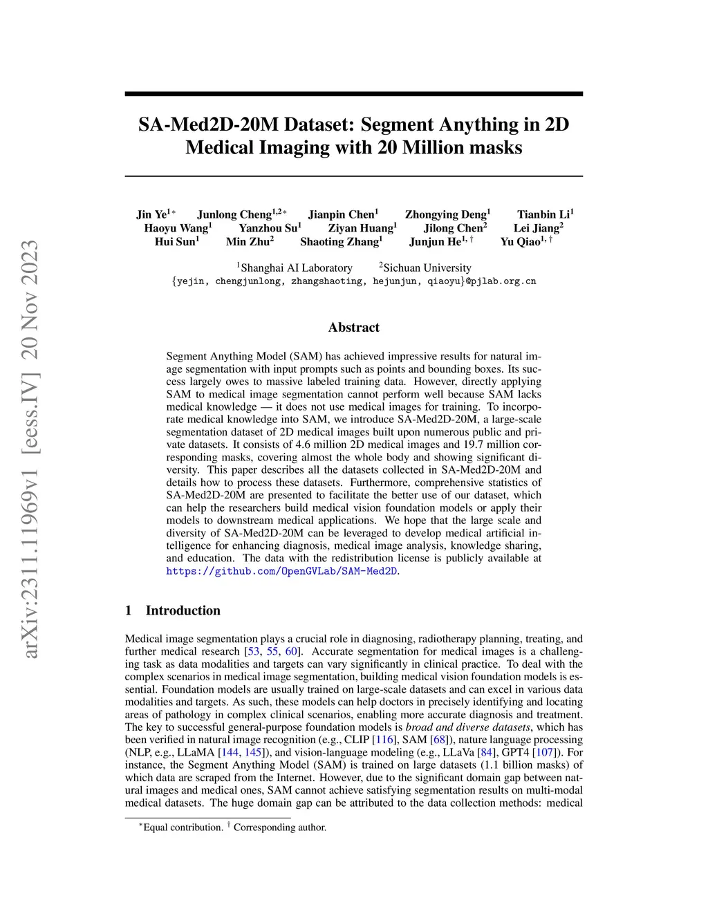 SA-Med2D-20M Dataset: Segment Anything in 2D Medical Imaging with 20