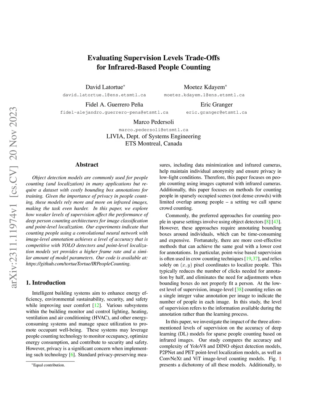 Evaluating Supervision Levels Trade-Offs for Infrared-Based People
