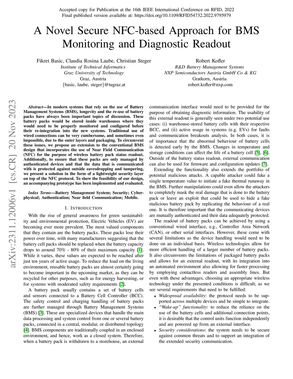 A Novel Secure NFC-based Approach for BMS Monitoring and Diagnostic