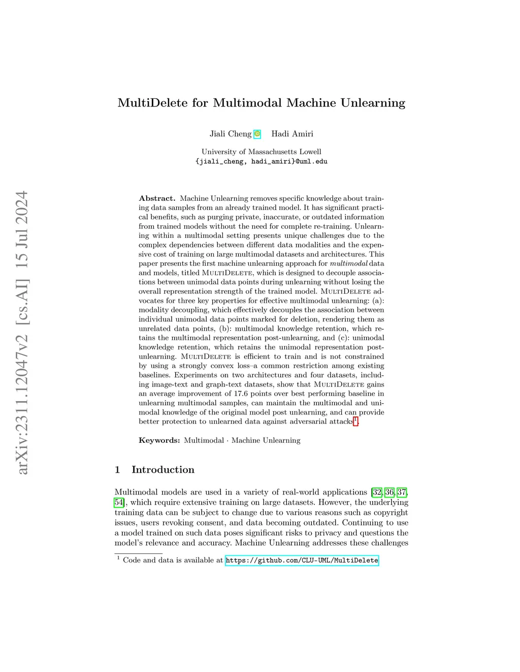 MultiDelete for Multimodal Machine Unlearning