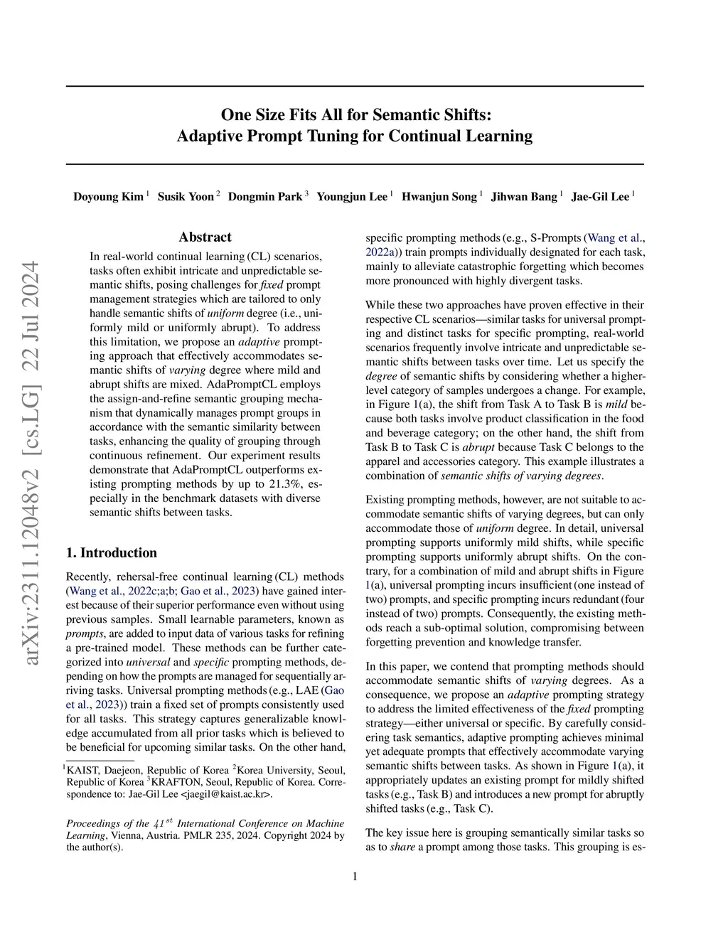 One Size Fits All for Semantic Shifts: Adaptive Prompt Tuning for