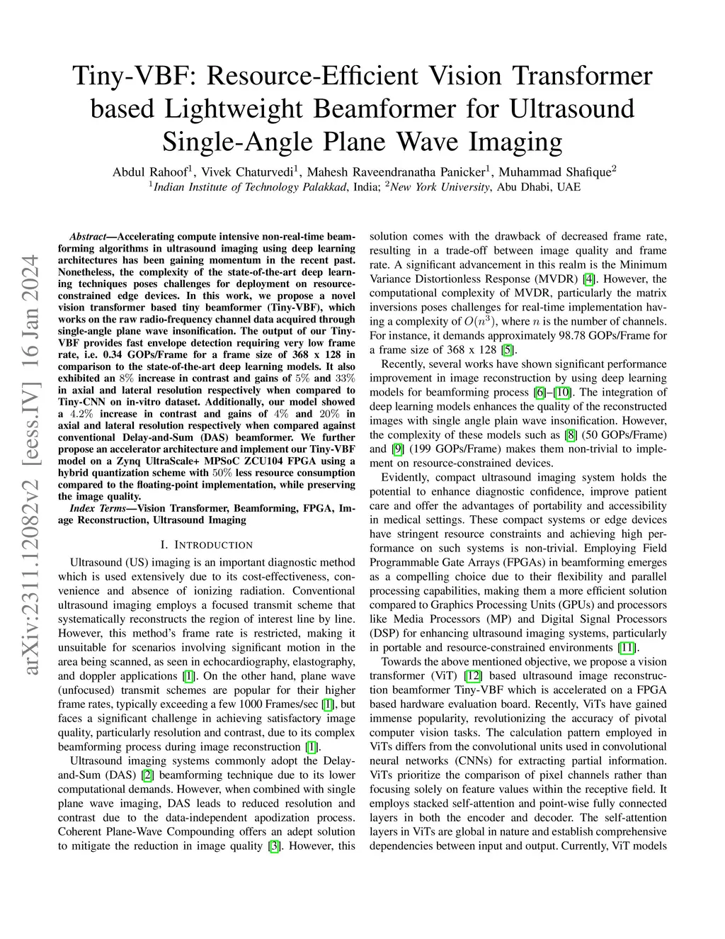 Tiny-VBF: Resource-Efficient Vision Transformer based Lightweight