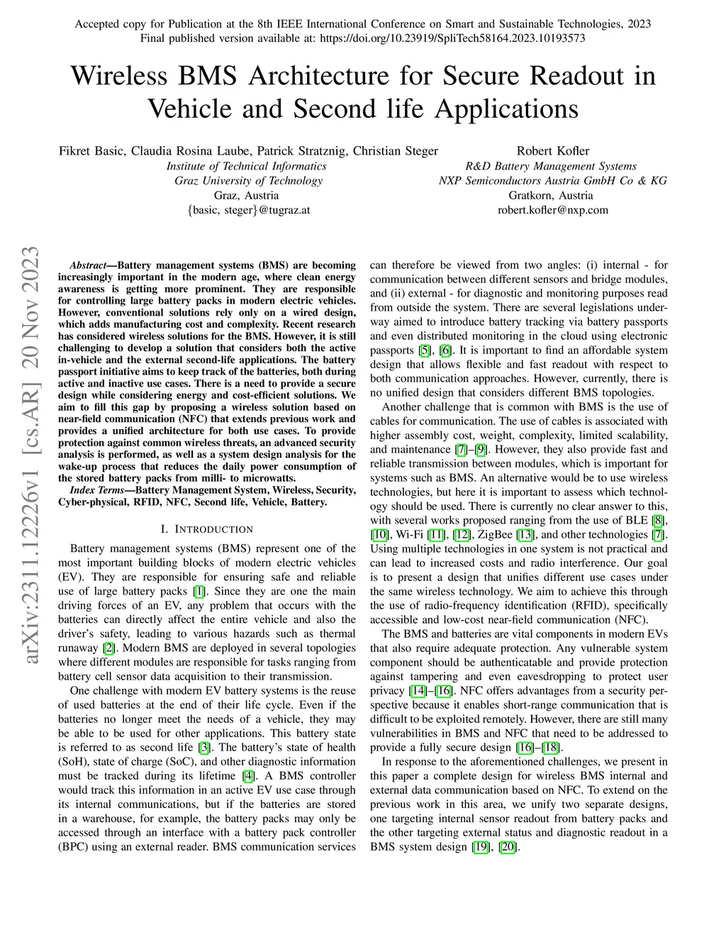 Wireless BMS Architecture for Secure Readout in Vehicle and Second life