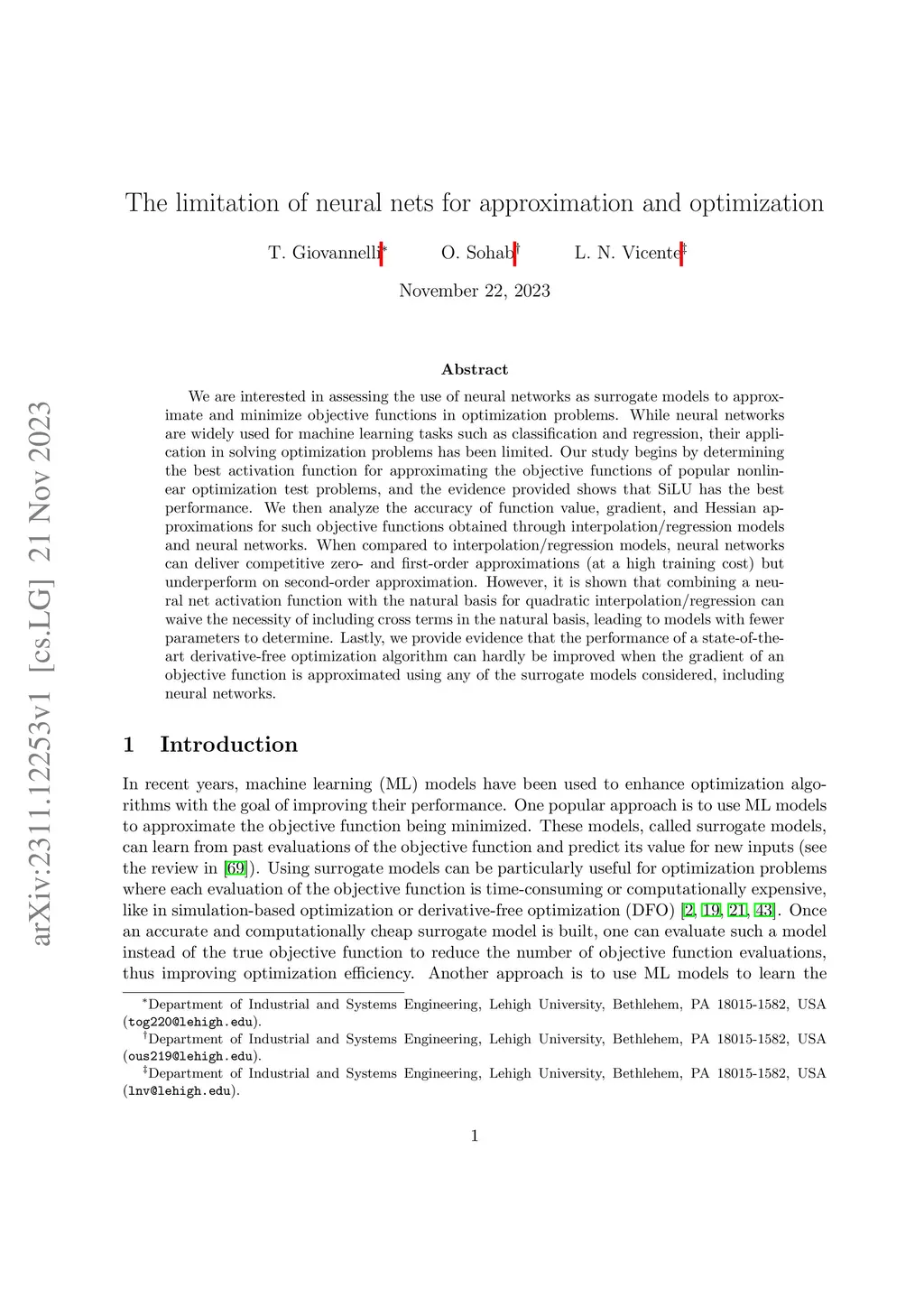 The limitation of neural nets for approximation and optimization