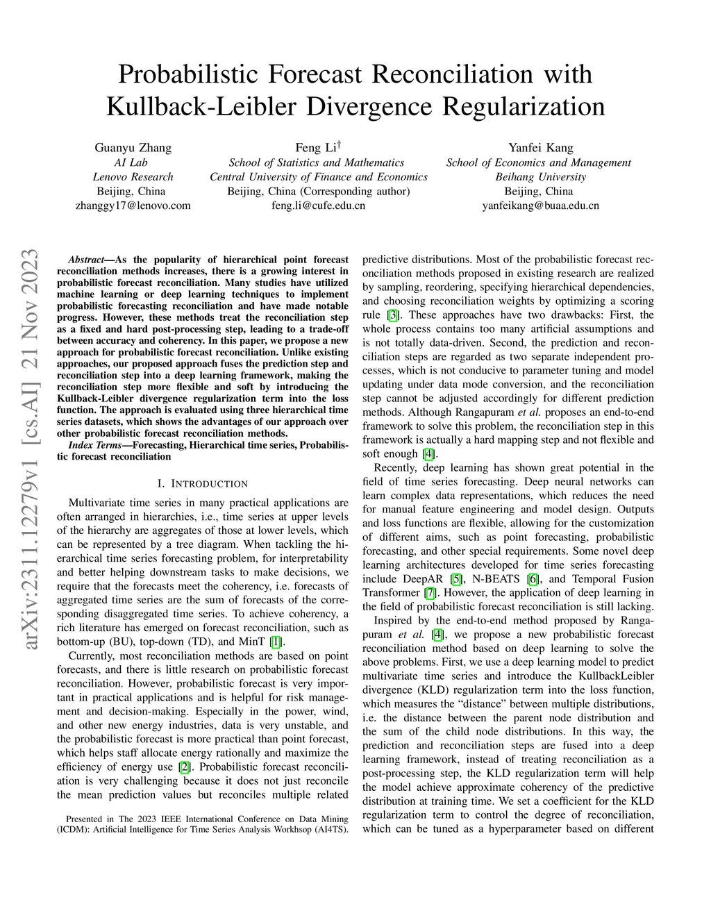 Probabilistic Forecast Reconciliation with Kullback-Leibler Divergence