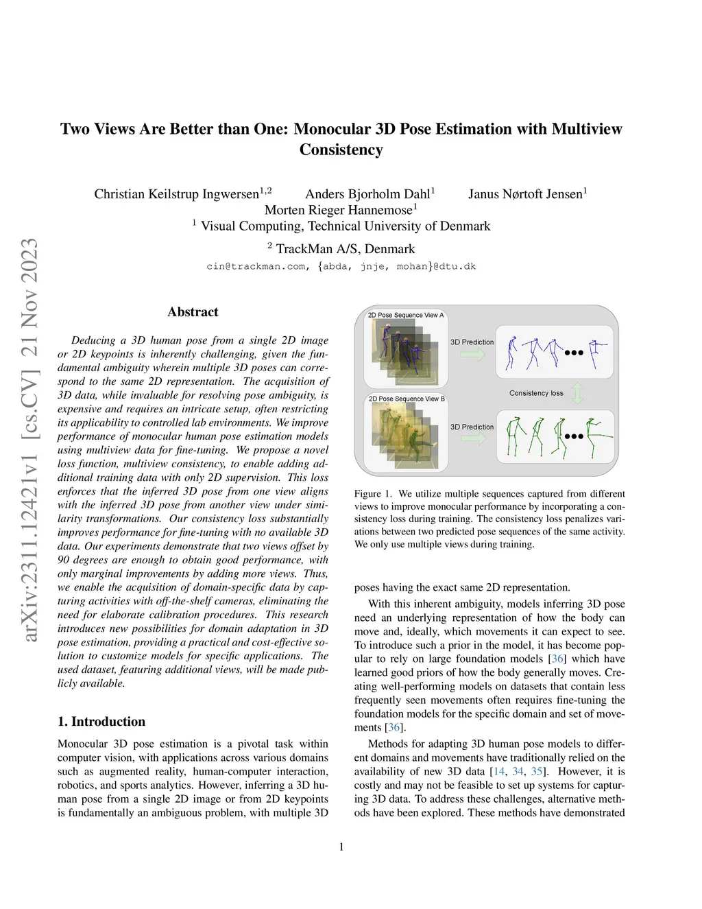 Two Views Are Better than One: Monocular 3D Pose Estimation with Multiview Consistency