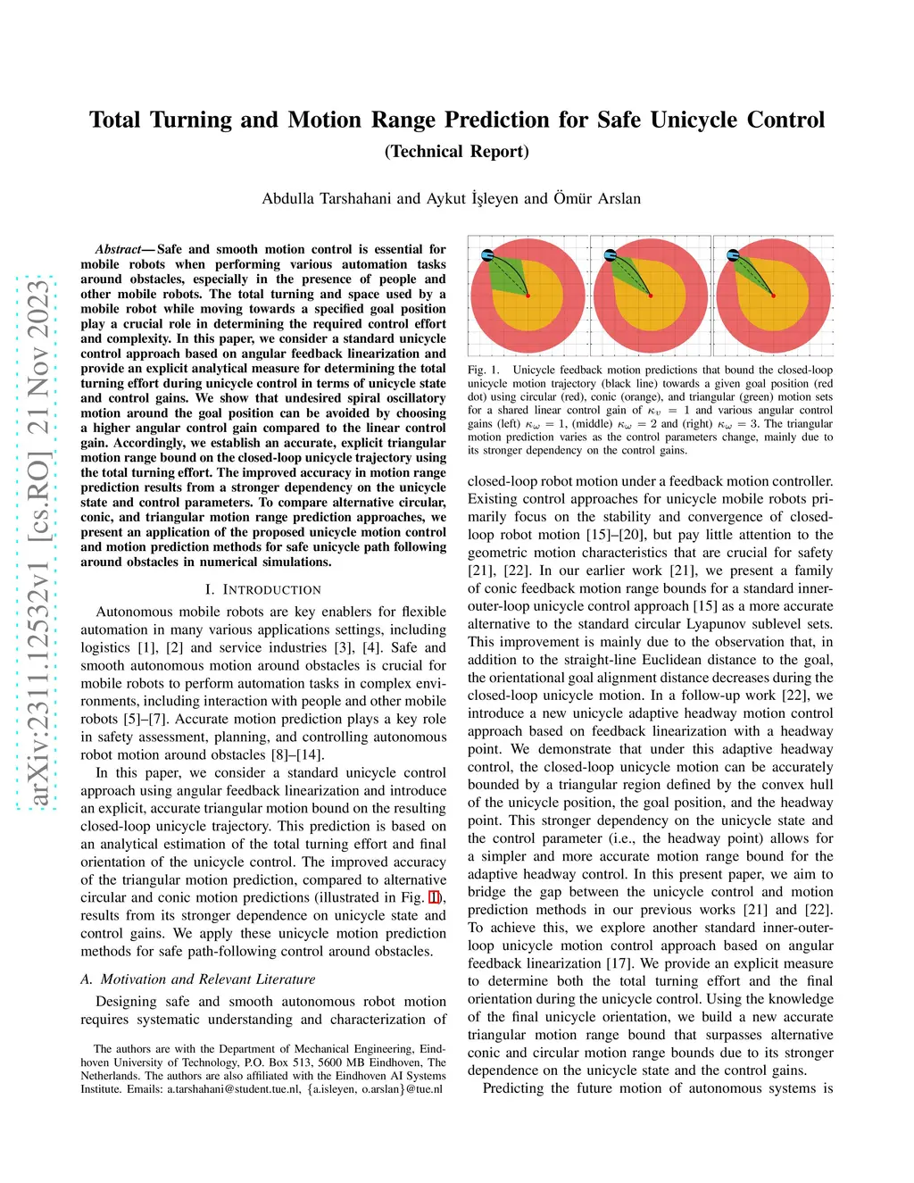 Total Turning and Motion Range Prediction for Safe Unicycle Control