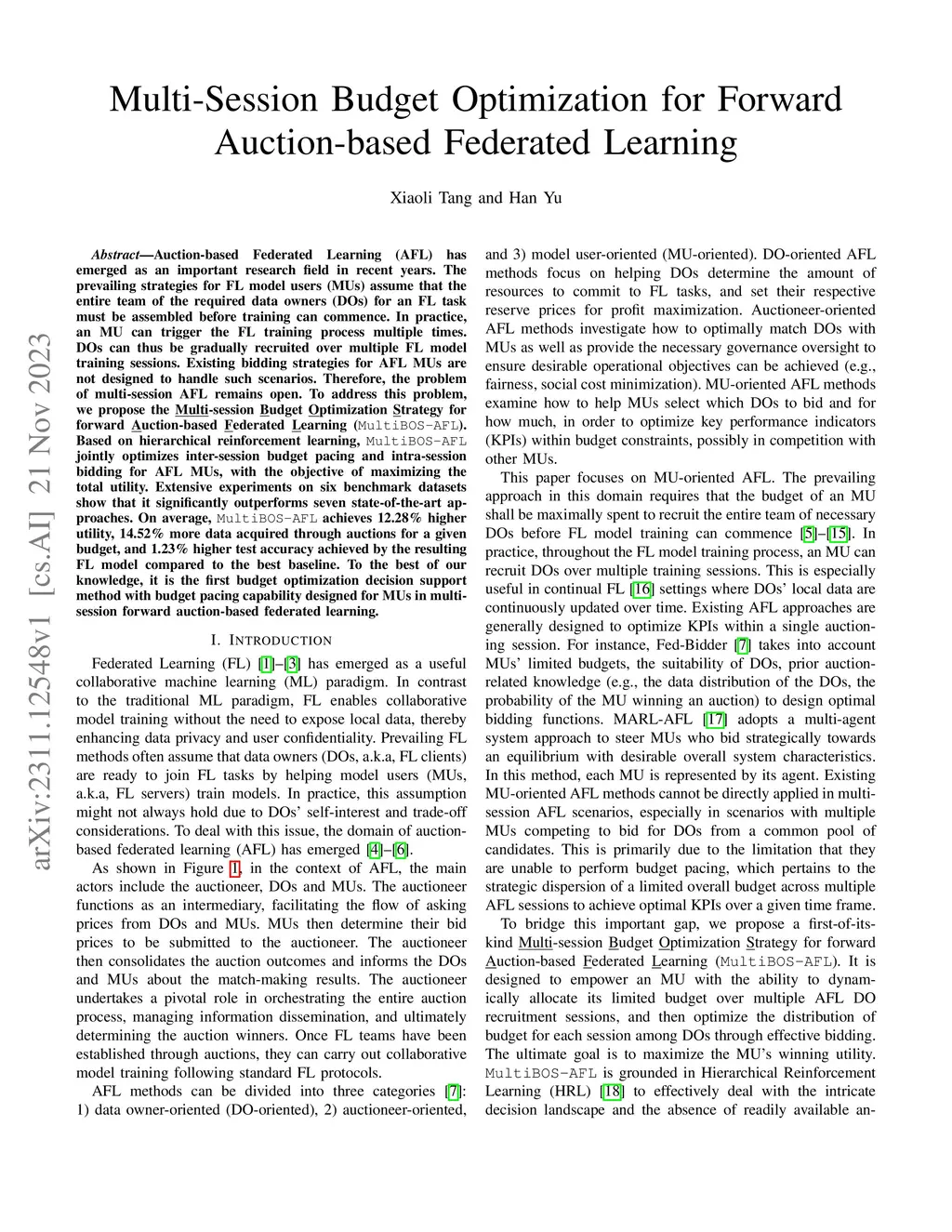 Multi-Session Budget Optimization for Forward Auction-based Federated