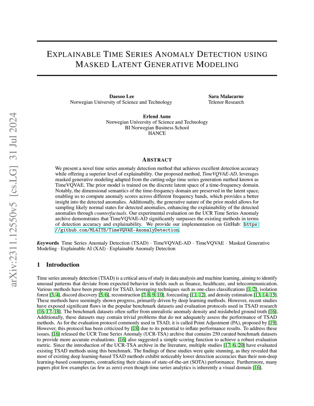 Explainable Time Series Anomaly Detection using Masked Latent Generative