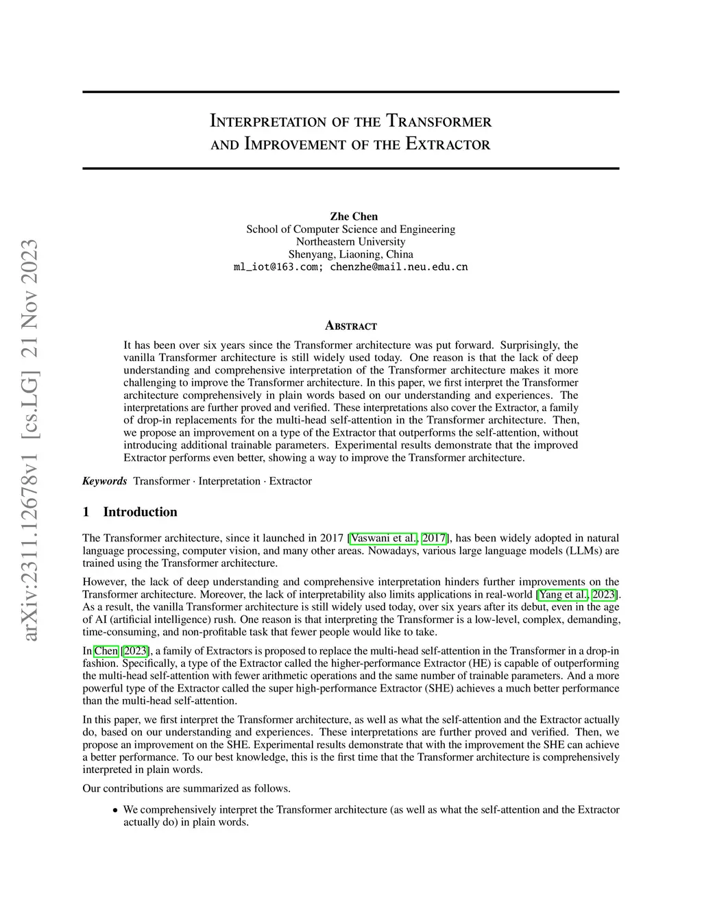 It has been over six years since the Transformer architecture was put forward. Surprisingly, the vanilla Transformer architecture is still widely used today. One reason is that the lack of deep understanding and comprehensive interpretation of the Transformer architecture makes it more challenging to improve the Transformer architecture. In this paper, we first interpret the Transformer architecture comprehensively in plain words based on our understanding and experiences. The interpretations are further proved and verified. These interpretations also cover the Extractor, a family of drop-in replacements for the multi-head self-attention in the Transformer architecture. Then, we propose an improvement on a type of the Extractor that outperforms the self-attention, without introducing additional trainable parameters. Experimental results demonstrate that the improved Extractor performs even better, showing a way to improve the Transformer architecture.