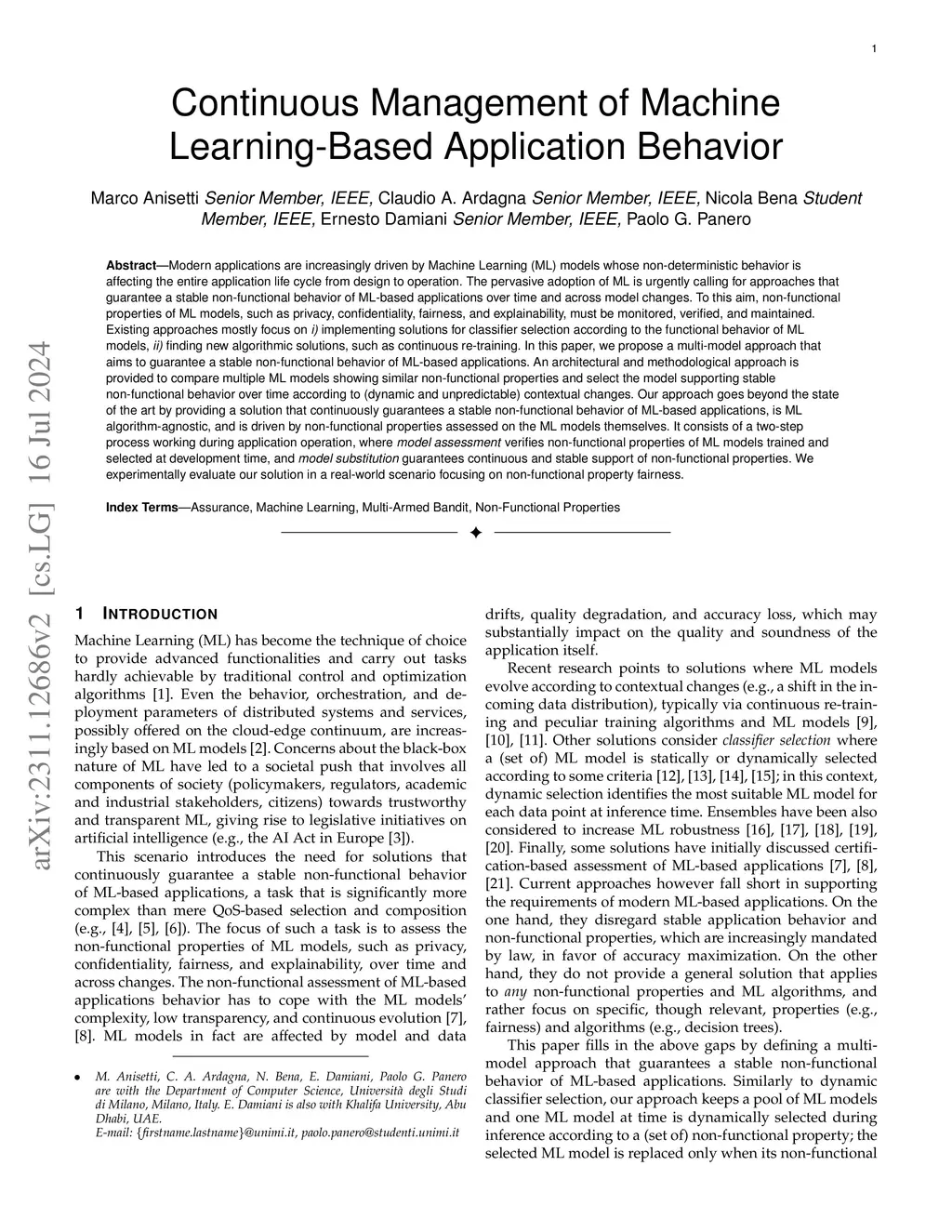 Continuous Management of Machine Learning-Based Application Behavior