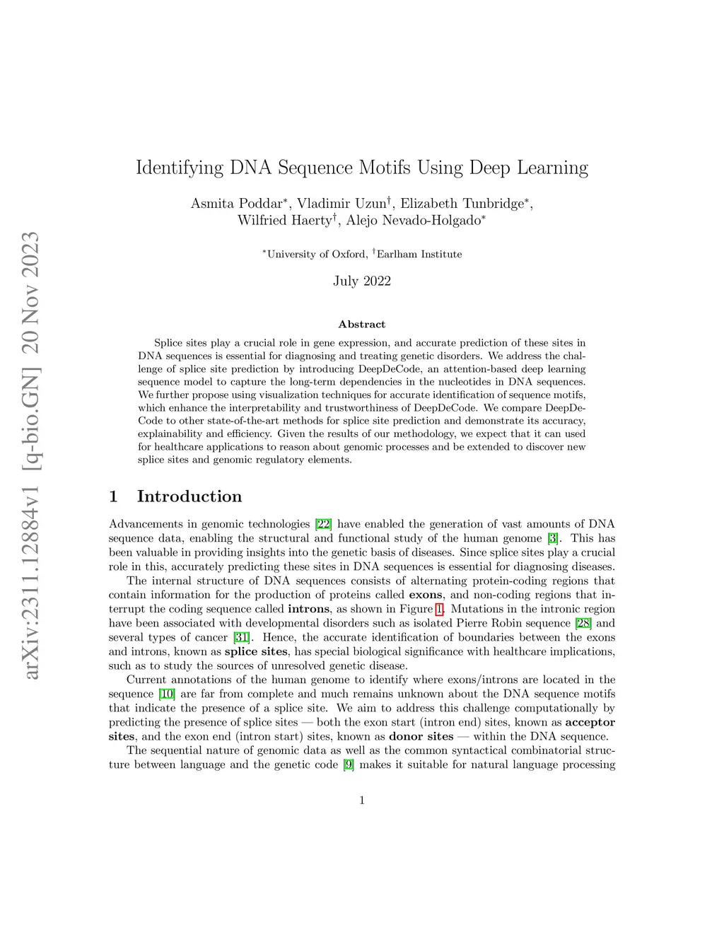 Splice sites play a crucial role in gene expression, and accurate prediction of these sites in DNA sequences is essential for diagnosing and treating genetic disorders. We address the challenge of splice site prediction by introducing DeepDeCode, an attention-based deep learning sequence model to capture the long-term dependencies in the nucleotides in DNA sequences. We further propose using visualization techniques for accurate identification of sequence motifs, which enhance the interpretability and trustworthiness of DeepDeCode. We compare DeepDeCode to other state-of-the-art methods for splice site prediction and demonstrate its accuracy, explainability and efficiency. Given the results of our methodology, we expect that it can used for healthcare applications to reason about genomic processes and be extended to discover new splice sites and genomic regulatory elements.