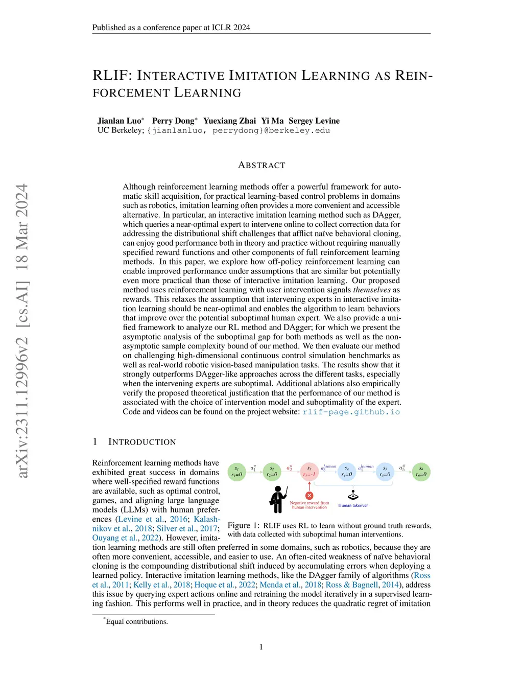 RLIF: Interactive Imitation Learning as Reinforcement Learning
