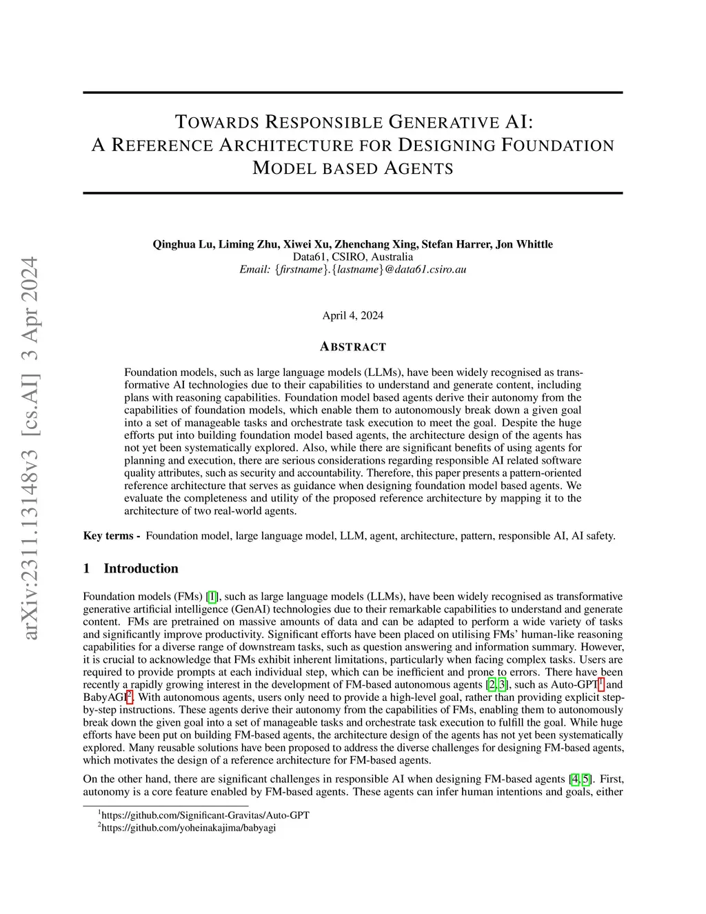 Towards Responsible Generative AI: A Reference Architecture for