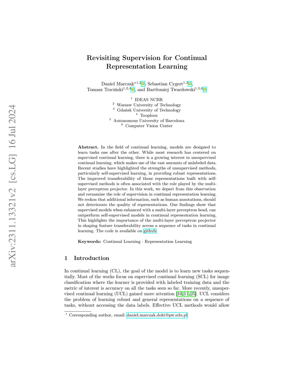 Revisiting Supervision for Continual Representation Learning
