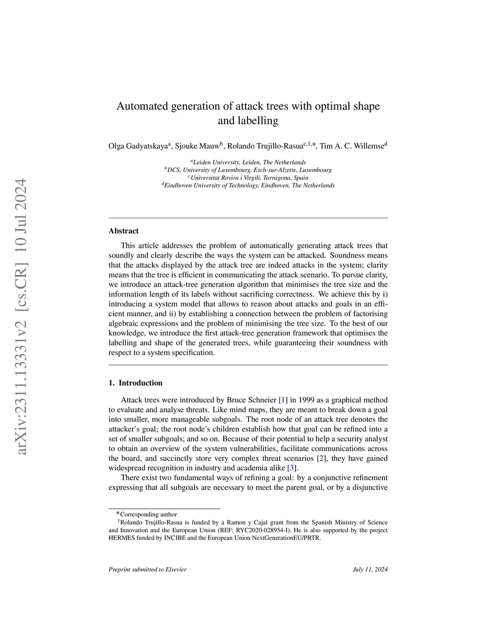 Automated generation of attack trees with optimal shape and labelling