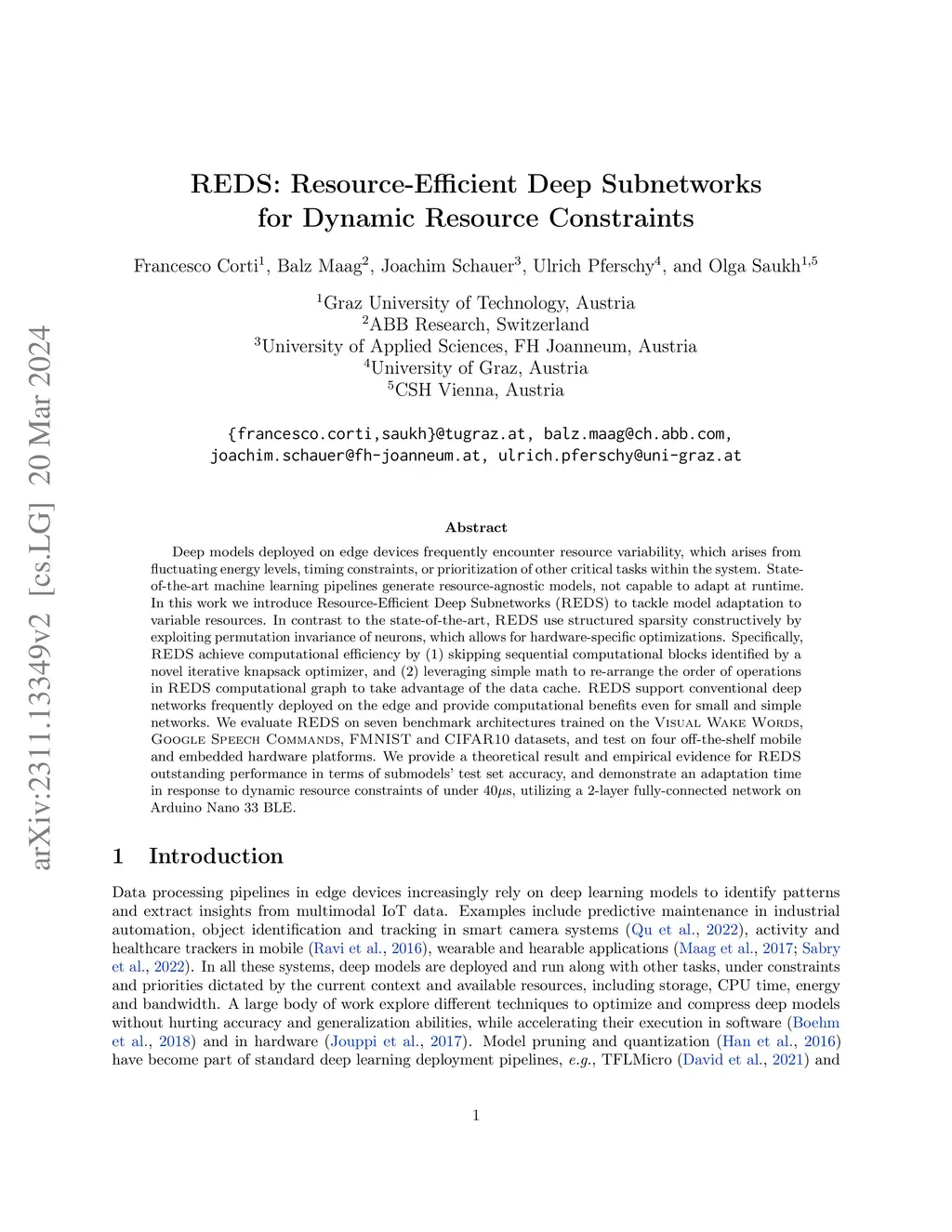 REDS: Resource-Efficient Deep Subnetworks for Dynamic Resource Constraints