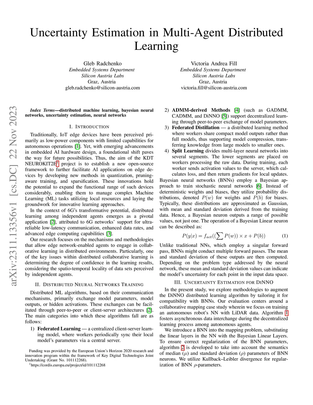 Traditionally, IoT edge devices have been perceived primarily as low-power components with limited capabilities for autonomous operations. Yet, with emerging advancements in embedded AI hardware design, a foundational shift paves the way for future possibilities. Thus, the aim of the KDT NEUROKIT2E project is to establish a new open-source framework to further facilitate AI applications on edge devices by developing new methods in quantization, pruning-aware training, and sparsification. These innovations hold the potential to expand the functional range of such devices considerably, enabling them to manage complex Machine Learning (ML) tasks utilizing local resources and laying the groundwork for innovative learning approaches. In the context of 6G's transformative potential, distributed learning among independent agents emerges as a pivotal application, attributed to 6G networks' support for ultra-reliable low-latency communication, enhanced data rates, and advanced edge computing capabilities. Our research focuses on the mechanisms and methodologies that allow edge network-enabled agents to engage in collaborative learning in distributed environments. Particularly, one of the key issues within distributed collaborative learning is determining the degree of confidence in the learning results, considering the spatio-temporal locality of data sets perceived by independent agents.