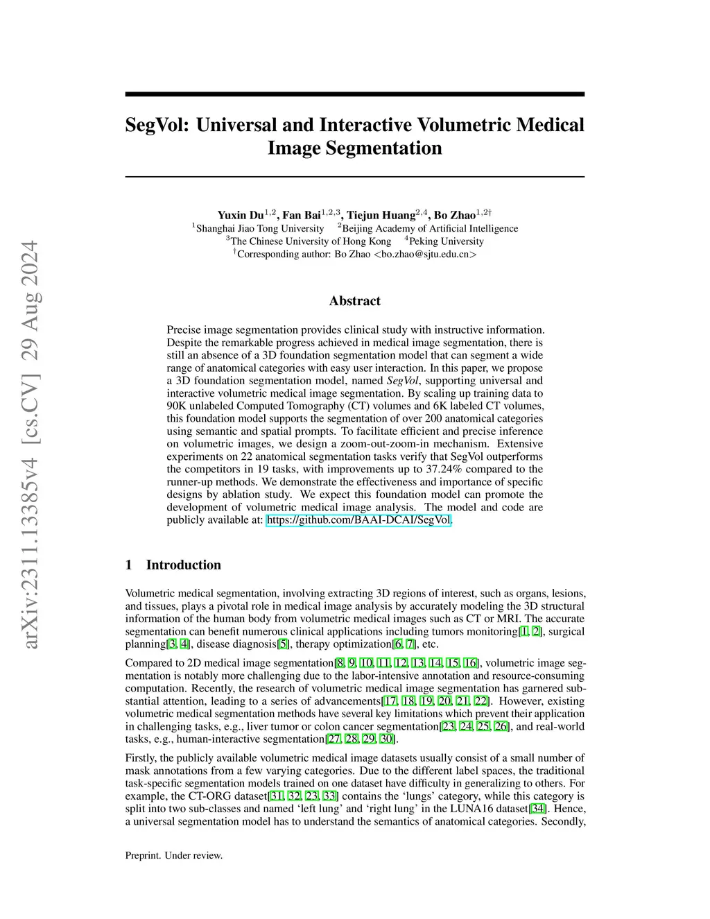 SegVol: Universal and Interactive Volumetric Medical Image Segmentation
