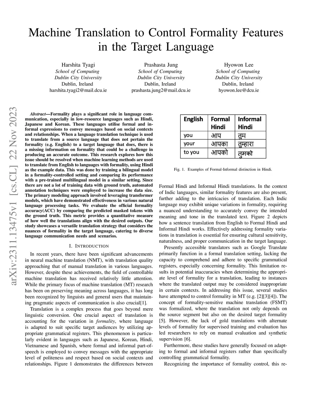 Formality plays a significant role in language communication, especially in low-resource languages such as Hindi, Japanese and Korean. These languages utilise formal and informal expressions to convey messages based on social contexts and relationships. When a language translation technique is used to translate from a source language that does not pertain the formality (e.g. English) to a target language that does, there is a missing information on formality that could be a challenge in producing an accurate outcome. This research explores how this issue should be resolved when machine learning methods are used to translate from English to languages with formality, using Hindi as the example data. This was done by training a bilingual model in a formality-controlled setting and comparing its performance with a pre-trained multilingual model in a similar setting. Since there are not a lot of training data with ground truth, automated annotation techniques were employed to increase the data size. The primary modeling approach involved leveraging transformer models, which have demonstrated effectiveness in various natural language processing tasks. We evaluate the official formality accuracy(ACC) by comparing the predicted masked tokens with the ground truth. This metric provides a quantitative measure of how well the translations align with the desired outputs. Our study showcases a versatile translation strategy that considers the nuances of formality in the target language, catering to diverse language communication needs and scenarios.
