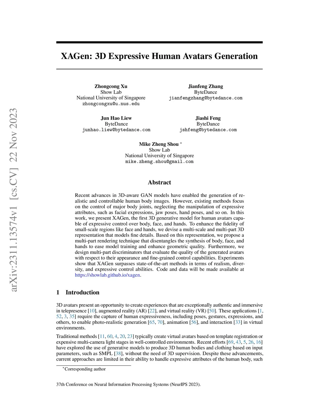 Recent advances in 3D-aware GAN models have enabled the generation of realistic and controllable human body images. However, existing methods focus on the control of major body joints, neglecting the manipulation of expressive attributes, such as facial expressions, jaw poses, hand poses, and so on. In this work, we present XAGen, the first 3D generative model for human avatars capable of expressive control over body, face, and hands. To enhance the fidelity of small-scale regions like face and hands, we devise a multi-scale and multi-part 3D representation that models fine details. Based on this representation, we propose a multi-part rendering technique that disentangles the synthesis of body, face, and hands to ease model training and enhance geometric quality. Furthermore, we design multi-part discriminators that evaluate the quality of the generated avatars with respect to their appearance and fine-grained control capabilities. Experiments show that XAGen surpasses state-of-the-art methods in terms of realism, diversity, and expressive control abilities. Code and data will be made available at https://showlab.github.io/xagen.