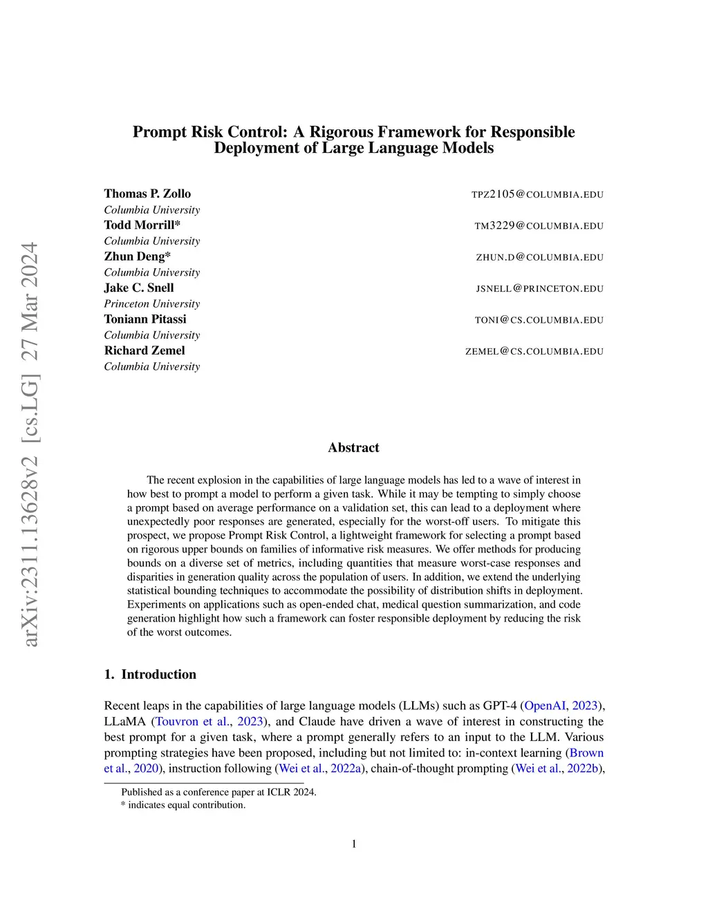 Prompt Risk Control: A Rigorous Framework for Responsible Deployment of