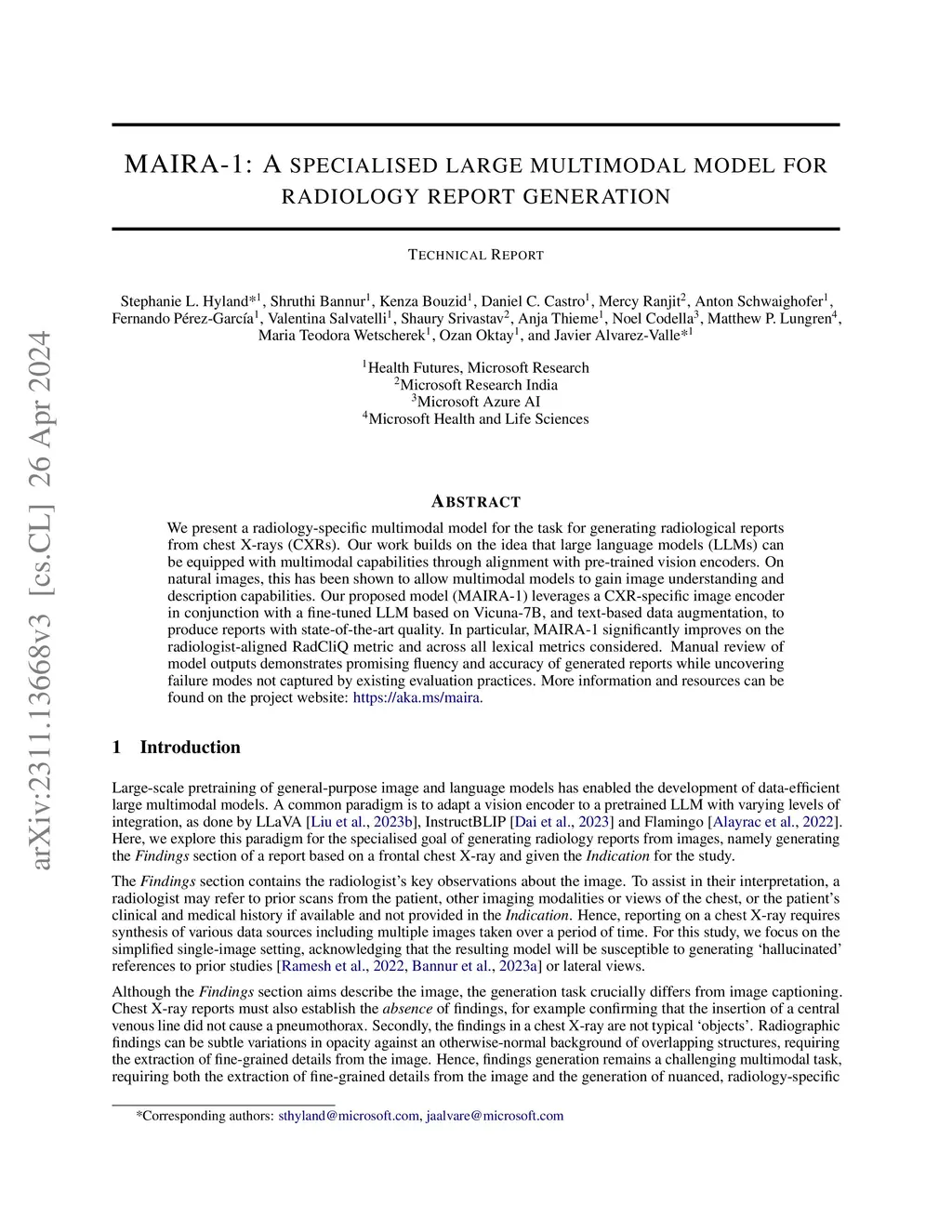 MAIRA-1: A specialised large multimodal model for radiology report
