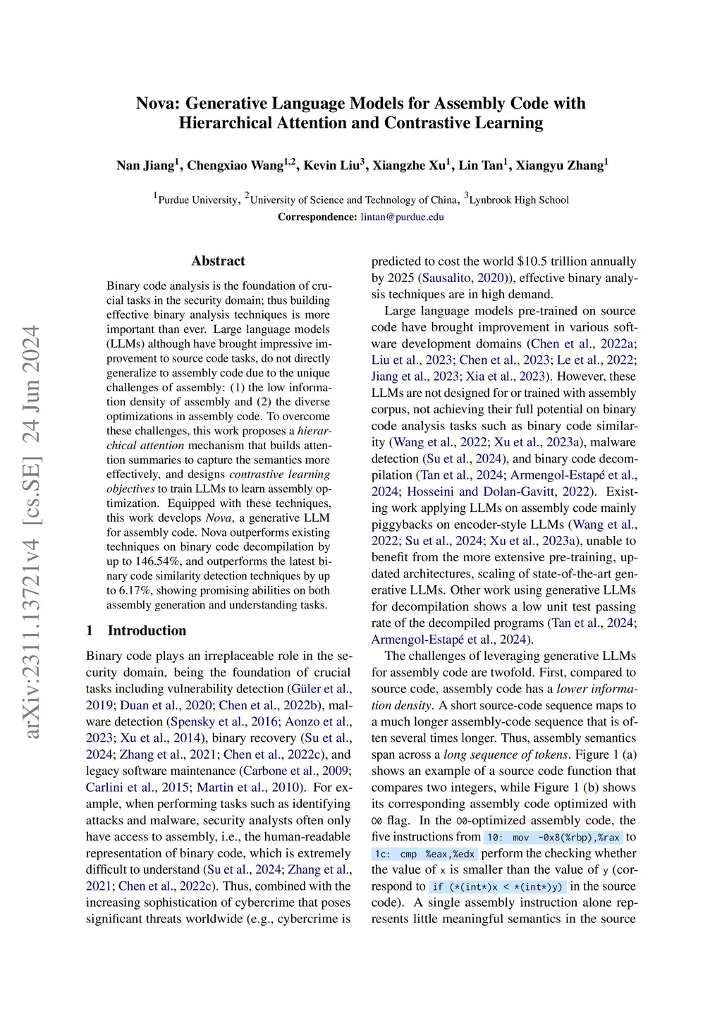 Nova: Generative Language Models for Assembly Code with Hierarchical