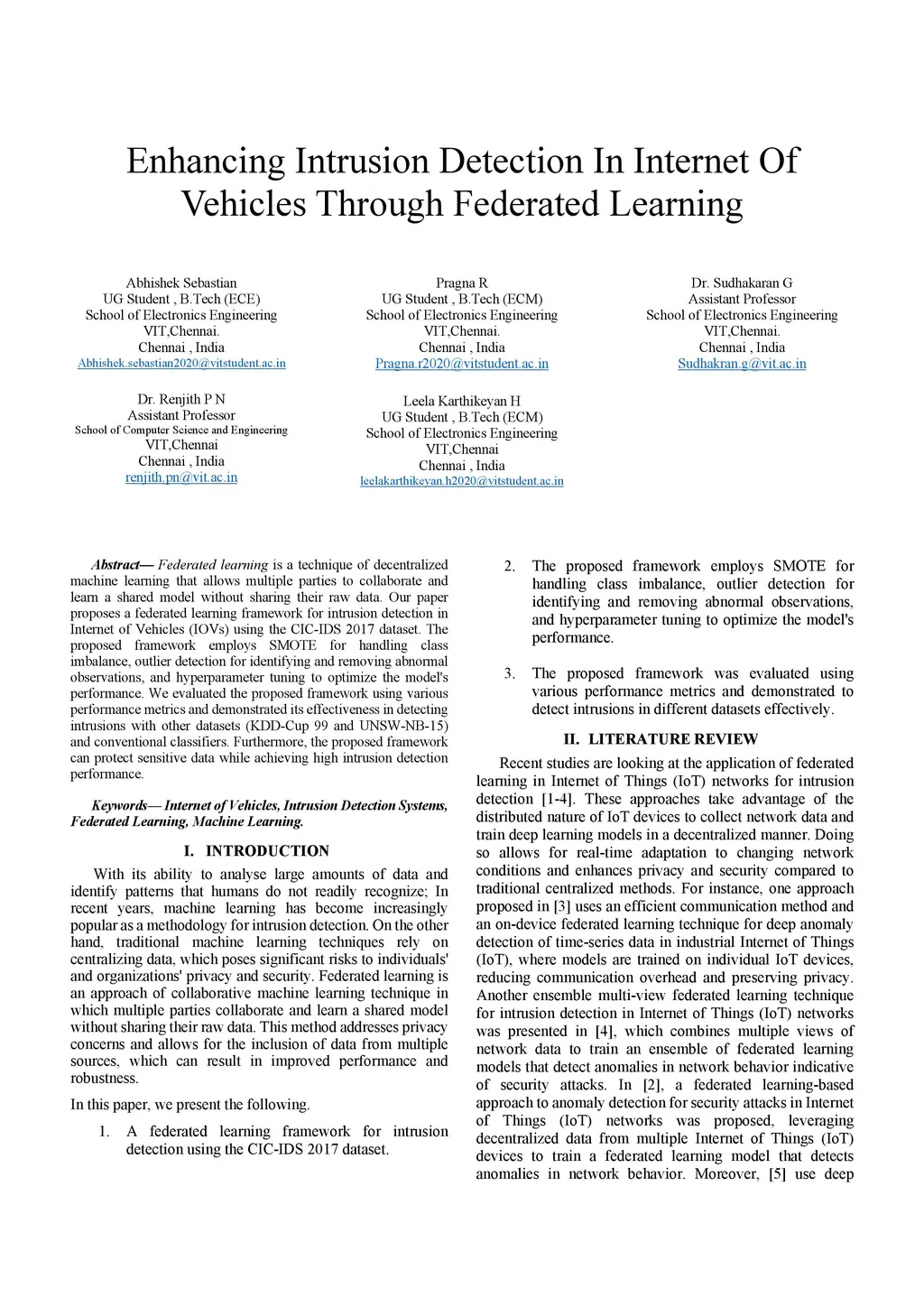 Enhancing Intrusion Detection In Internet Of Vehicles Through Federated