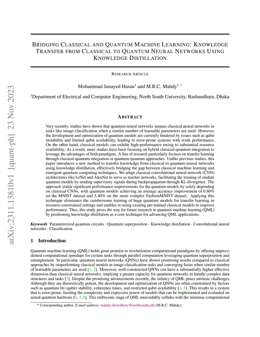 Bridging Classical and Quantum Machine Learning: Knowledge Transfer From Classical to Quantum Neural Networks Using Knowledge Distillation