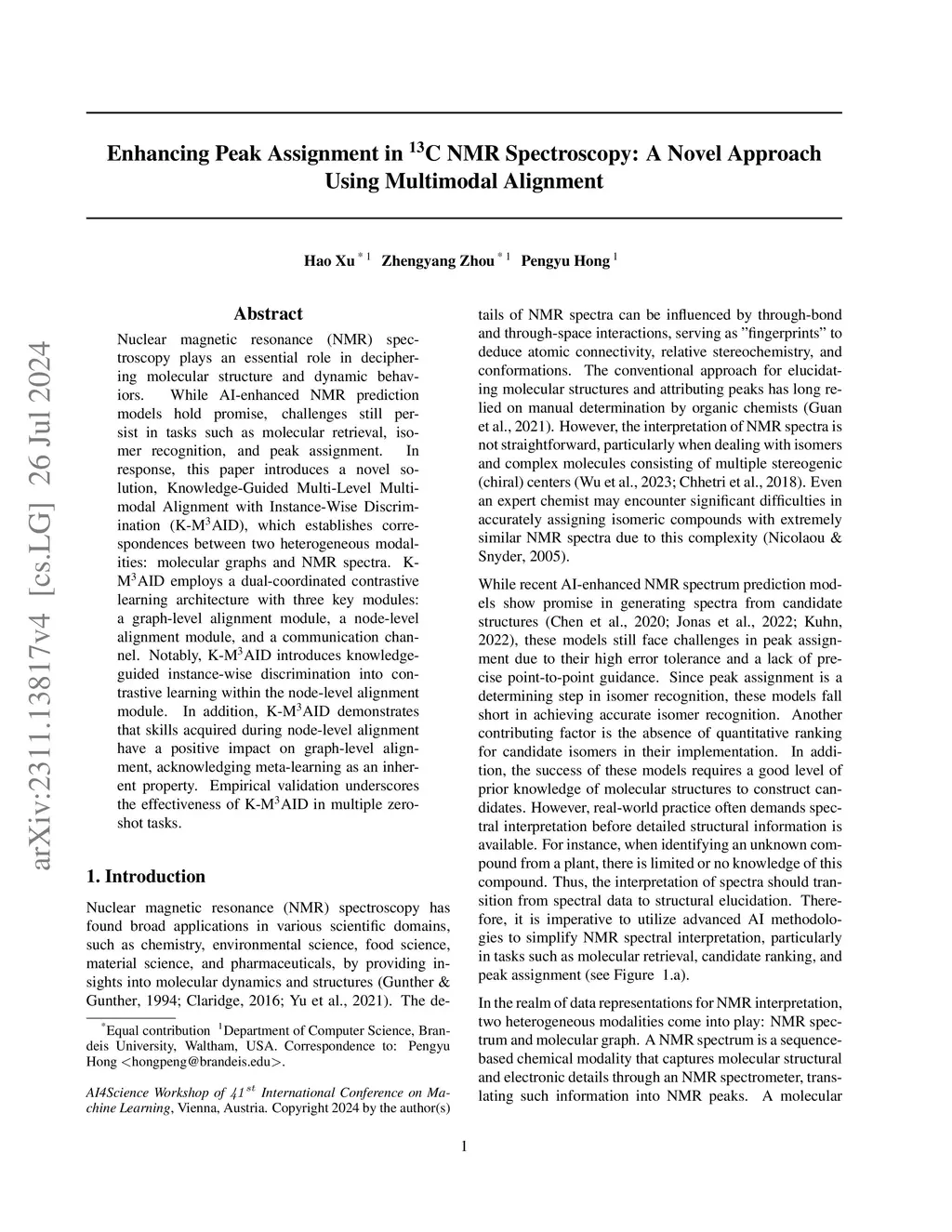 Nuclear magnetic resonance (NMR) spectroscopy plays an essential role in deciphering molecular structure and dynamic behaviors. While AI-enhanced NMR prediction models hold promise, challenges still persist in tasks such as molecular retrieval, isomer recognition, and peak assignment. In response, this paper introduces a novel solution, Multi-Level Multimodal Alignment with Knowledge-Guided Instance-Wise Discrimination (K-M3AID), which establishes correspondences between two heterogeneous modalities: molecular graphs and NMR spectra. K-M3AID employs a dual-coordinated contrastive learning architecture with three key modules: a graph-level alignment module, a node-level alignment module, and a communication channel. Notably, K-M3AID introduces knowledge-guided instance-wise discrimination into contrastive learning within the node-level alignment module. In addition, K-M3AID demonstrates that skills acquired during node-level alignment have a positive impact on graph-level alignment, acknowledging meta-learning as an inherent property. Empirical validation underscores K-M3AID's effectiveness in multiple zero-shot tasks.