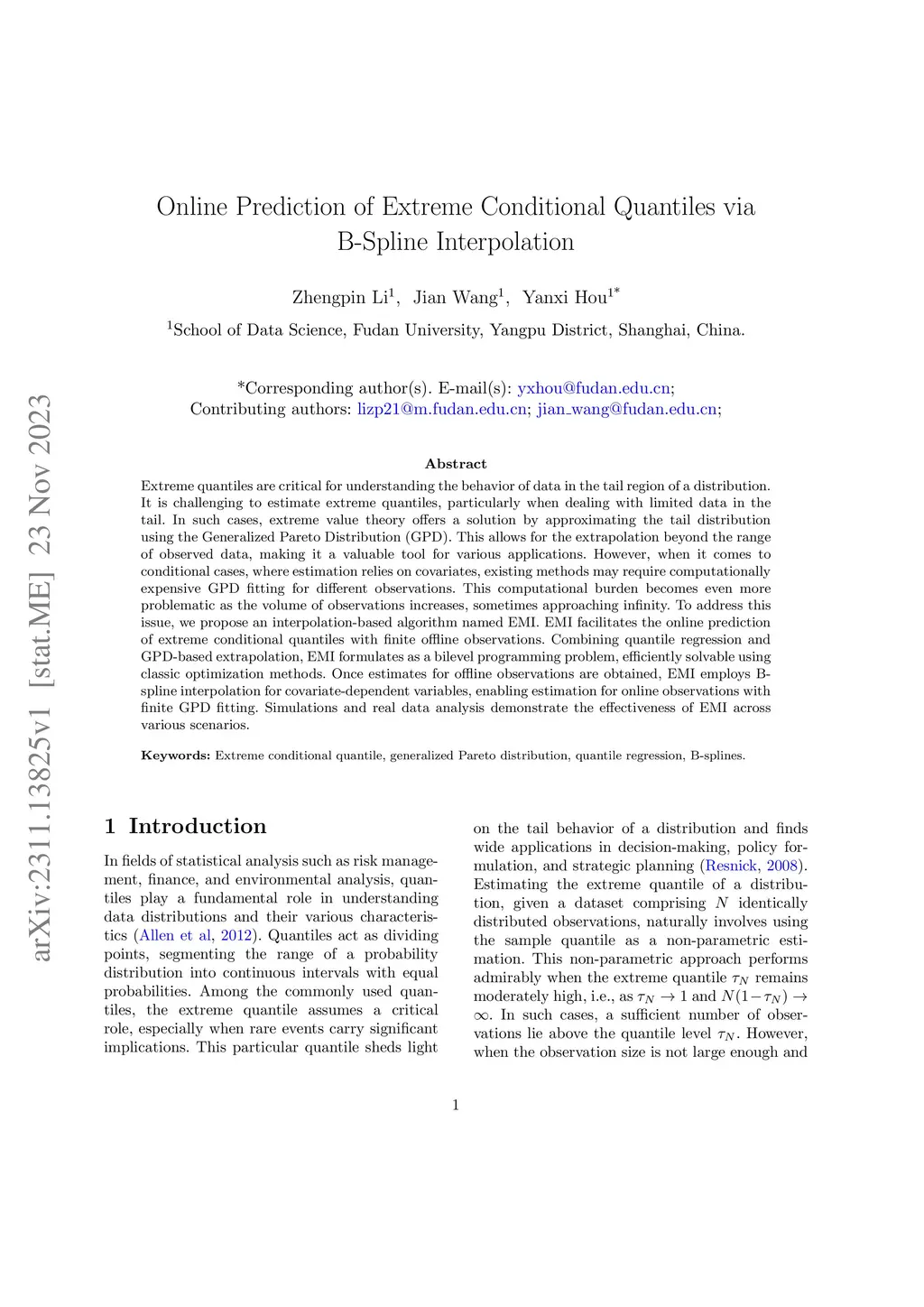 Extreme quantiles are critical for understanding the behavior of data in the tail region of a distribution. It is challenging to estimate extreme quantiles, particularly when dealing with limited data in the tail. In such cases, extreme value theory offers a solution by approximating the tail distribution using the Generalized Pareto Distribution (GPD). This allows for the extrapolation beyond the range of observed data, making it a valuable tool for various applications. However, when it comes to conditional cases, where estimation relies on covariates, existing methods may require computationally expensive GPD fitting for different observations. This computational burden becomes even more problematic as the volume of observations increases, sometimes approaching infinity. To address this issue, we propose an interpolation-based algorithm named EMI. EMI facilitates the online prediction of extreme conditional quantiles with finite offline observations. Combining quantile regression and GPD-based extrapolation, EMI formulates as a bilevel programming problem, efficiently solvable using classic optimization methods. Once estimates for offline observations are obtained, EMI employs B-spline interpolation for covariate-dependent variables, enabling estimation for online observations with finite GPD fitting. Simulations and real data analysis demonstrate the effectiveness of EMI across various scenarios.