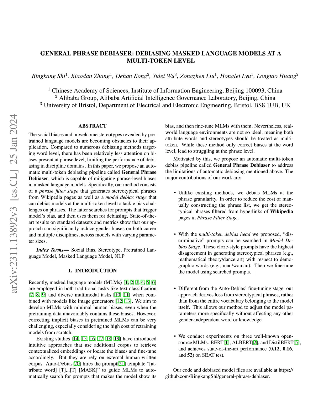 General Phrase Debiaser: Debiasing Masked Language Models at a