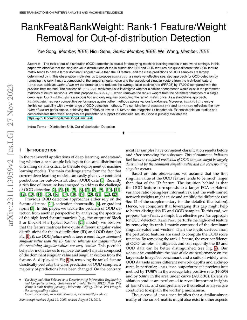 RankFeat&RankWeight: Rank-1 Feature/Weight Removal for