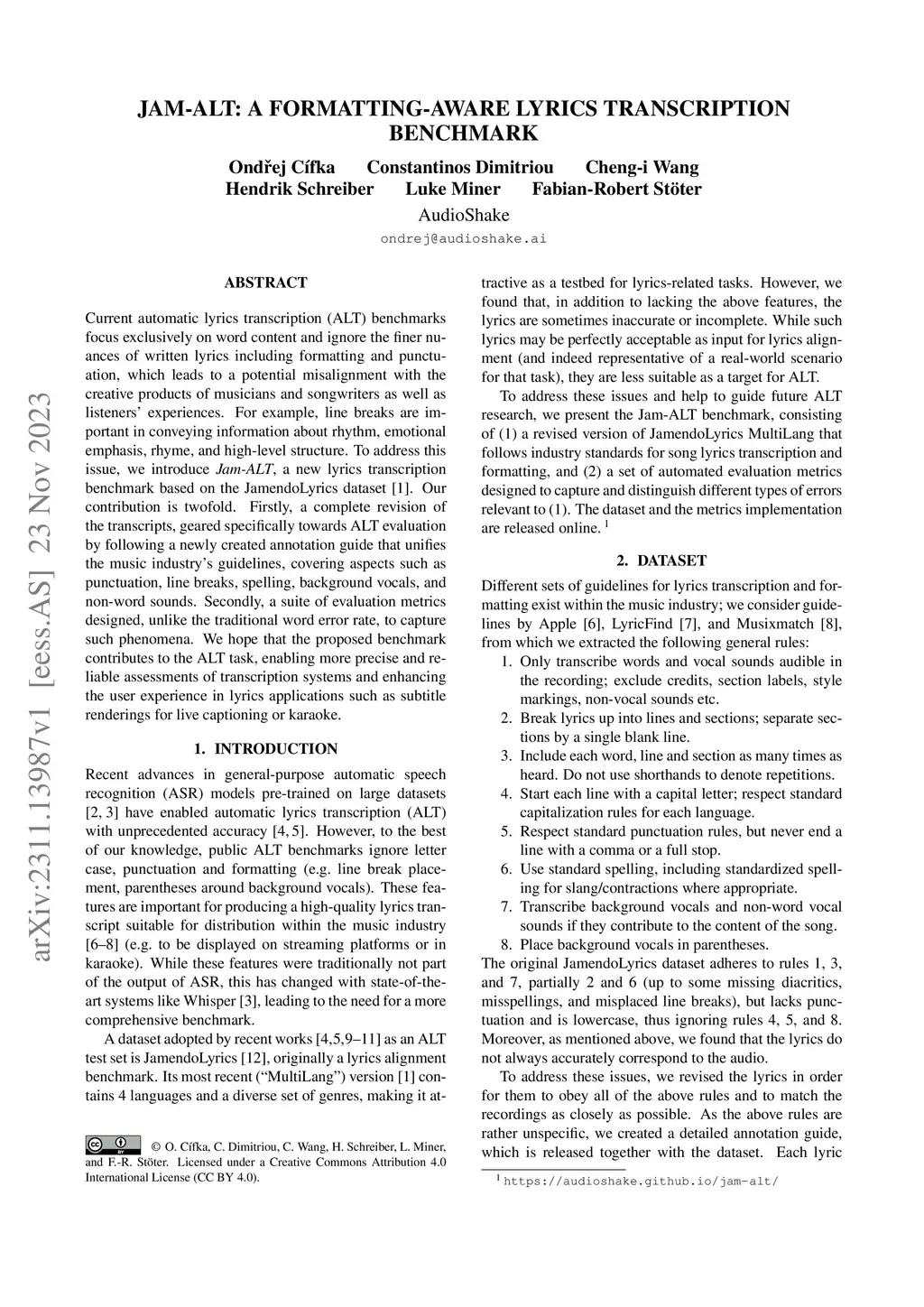 Current automatic lyrics transcription (ALT) benchmarks focus exclusively on word content and ignore the finer nuances of written lyrics including formatting and punctuation, which leads to a potential misalignment with the creative products of musicians and songwriters as well as listeners' experiences. For example, line breaks are important in conveying information about rhythm, emotional emphasis, rhyme, and high-level structure. To address this issue, we introduce Jam-ALT, a new lyrics transcription benchmark based on the JamendoLyrics dataset. Our contribution is twofold. Firstly, a complete revision of the transcripts, geared specifically towards ALT evaluation by following a newly created annotation guide that unifies the music industry's guidelines, covering aspects such as punctuation, line breaks, spelling, background vocals, and non-word sounds. Secondly, a suite of evaluation metrics designed, unlike the traditional word error rate, to capture such phenomena. We hope that the proposed benchmark contributes to the ALT task, enabling more precise and reliable assessments of transcription systems and enhancing the user experience in lyrics applications such as subtitle renderings for live captioning or karaoke.