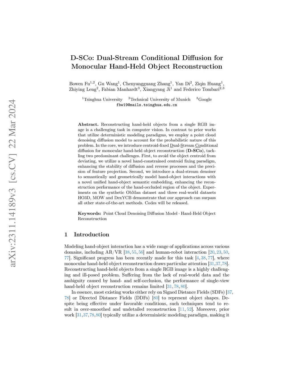 D-SCo: Dual-Stream Conditional Diffusion for Monocular Hand-Held Object