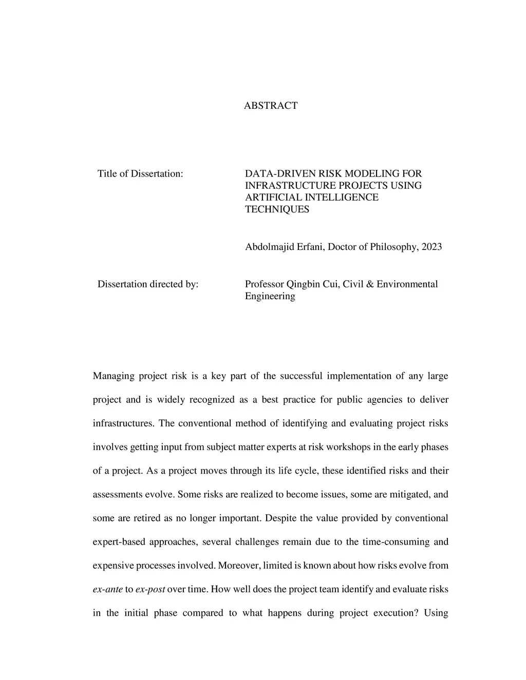 Managing project risk is a key part of the successful implementation of any large project and is widely recognized as a best practice for public agencies to deliver infrastructures. The conventional method of identifying and evaluating project risks involves getting input from subject matter experts at risk workshops in the early phases of a project. As a project moves through its life cycle, these identified risks and their assessments evolve. Some risks are realized to become issues, some are mitigated, and some are retired as no longer important. Despite the value provided by conventional expert-based approaches, several challenges remain due to the time-consuming and expensive processes involved. Moreover, limited is known about how risks evolve from ex-ante to ex-post over time. How well does the project team identify and evaluate risks in the initial phase compared to what happens during project execution? Using historical data and artificial intelligence techniques, this study addressed these limitations by introducing a data-driven framework to identify risks automatically and to examine the quality of early risk registers and risk assessments. Risk registers from more than 70 U.S. major transportation projects form the input dataset.
