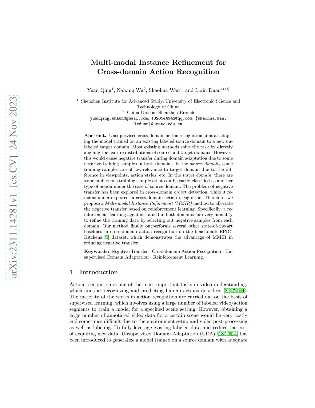 Multi-modal Instance Refinement for Cross-domain Action Recognition