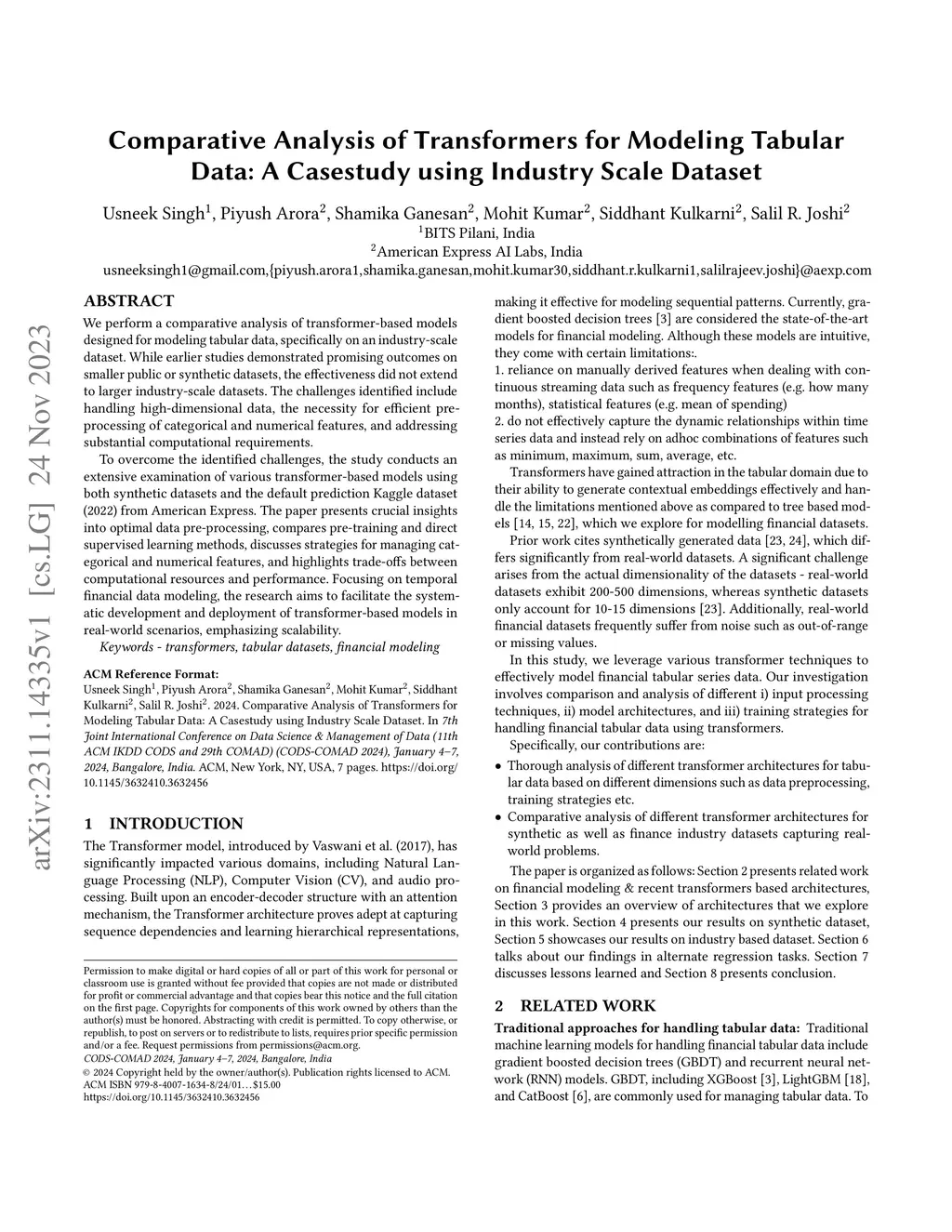 We perform a comparative analysis of transformer-based models designed for modeling tabular data, specifically on an industry-scale dataset. While earlier studies demonstrated promising outcomes on smaller public or synthetic datasets, the effectiveness did not extend to larger industry-scale datasets. The challenges identified include handling high-dimensional data, the necessity for efficient pre-processing of categorical and numerical features, and addressing substantial computational requirements. To overcome the identified challenges, the study conducts an extensive examination of various transformer-based models using both synthetic datasets and the default prediction Kaggle dataset (2022) from American Express. The paper presents crucial insights into optimal data pre-processing, compares pre-training and direct supervised learning methods, discusses strategies for managing categorical and numerical features, and highlights trade-offs between computational resources and performance. Focusing on temporal financial data modeling, the research aims to facilitate the systematic development and deployment of transformer-based models in real-world scenarios, emphasizing scalability.