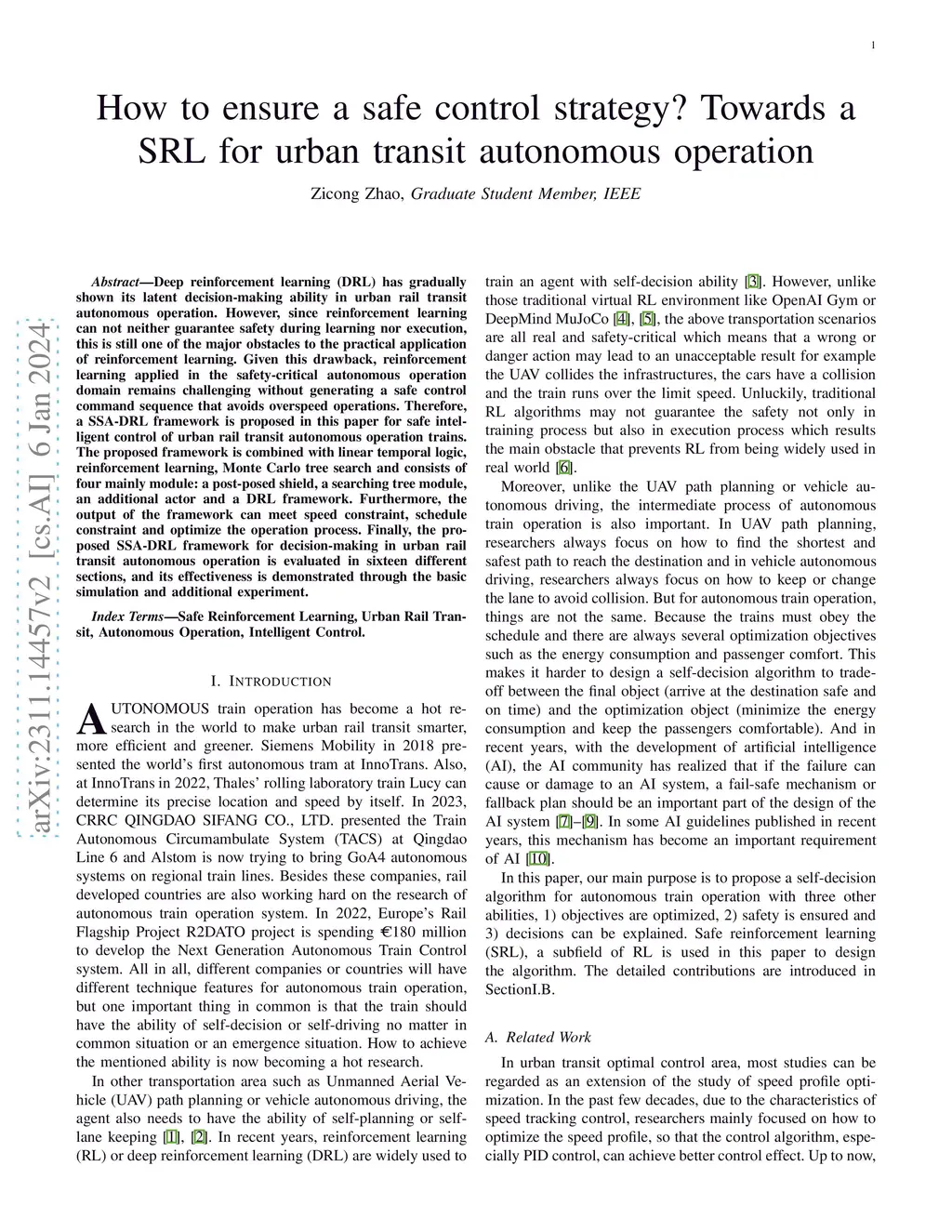How to ensure a safe control strategy? Towards a SRL for urban transit