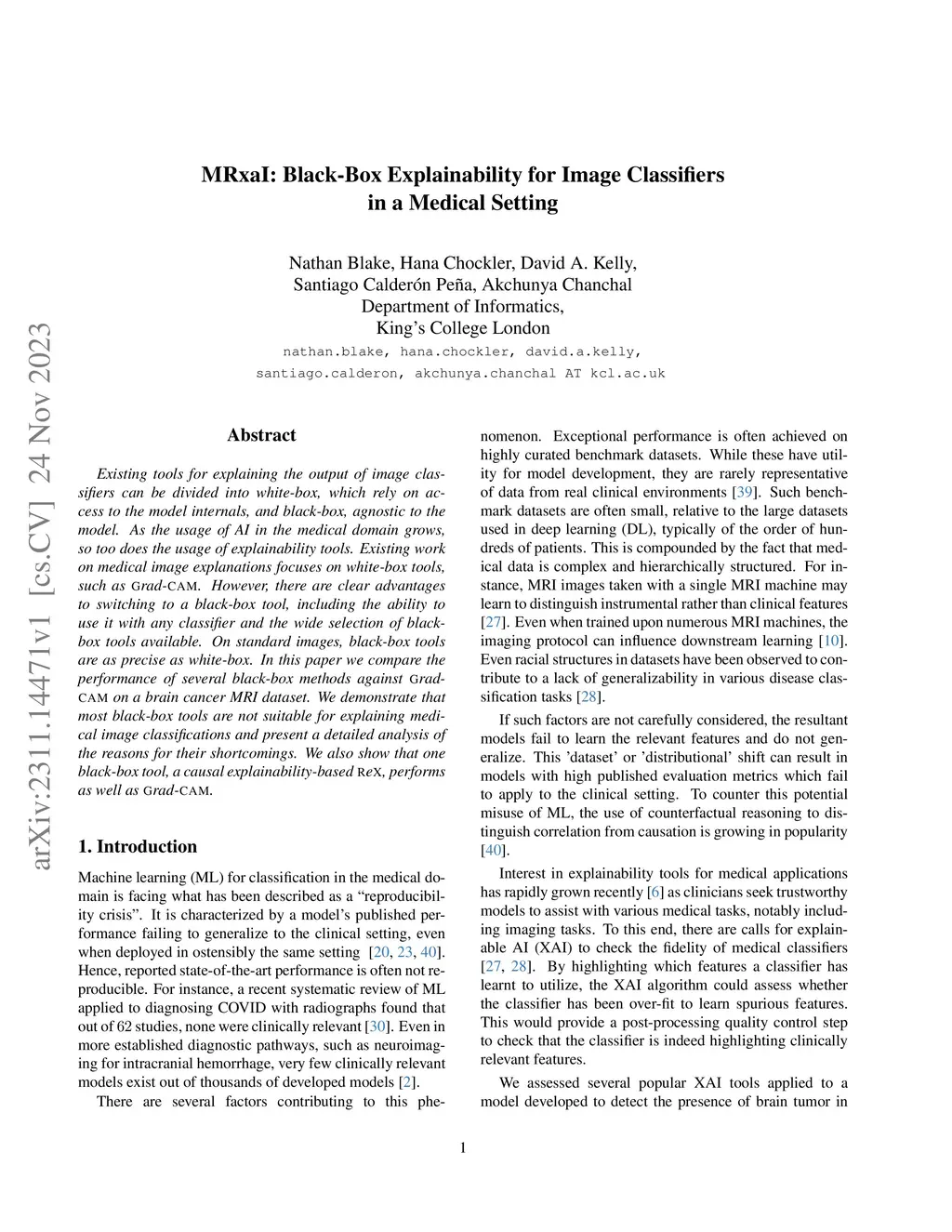 MRxaI: Black-Box Explainability for Image Classifiers in a Medical