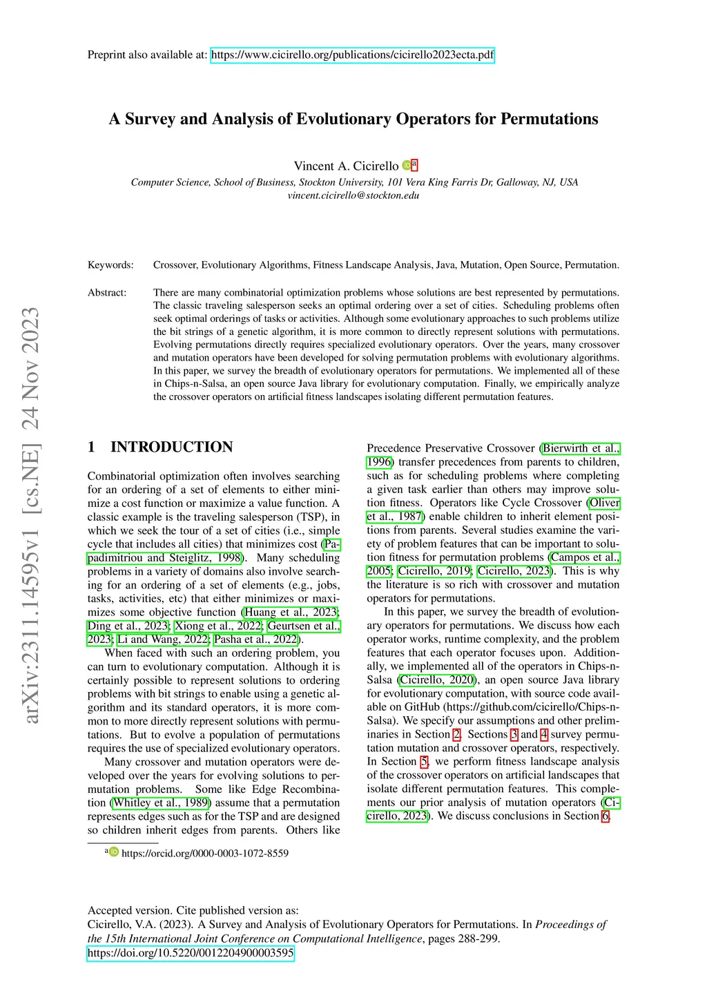 A Survey and Analysis of Evolutionary Operators for Permutations