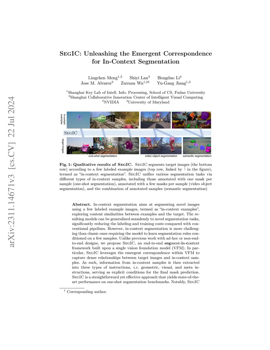 SEGIC: Unleashing the Emergent Correspondence for In-Context