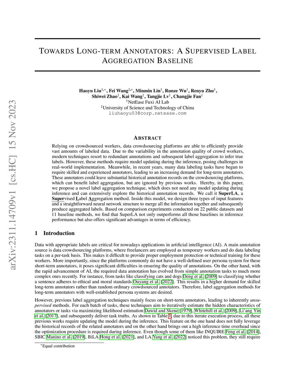 Relying on crowdsourced workers, data crowdsourcing platforms are able to efficiently provide vast amounts of labeled data. Due to the variability in the annotation quality of crowd workers, modern techniques resort to redundant annotations and subsequent label aggregation to infer true labels. However, these methods require model updating during the inference, posing challenges in real-world implementation. Meanwhile, in recent years, many data labeling tasks have begun to require skilled and experienced annotators, leading to an increasing demand for long-term annotators. These annotators could leave substantial historical annotation records on the crowdsourcing platforms, which can benefit label aggregation, but are ignored by previous works. Hereby, in this paper, we propose a novel label aggregation technique, which does not need any model updating during inference and can extensively explore the historical annotation records. We call it SuperLA, a Supervised Label Aggregation method. Inside this model, we design three types of input features and a straightforward neural network structure to merge all the information together and subsequently produce aggregated labels. Based on comparison experiments conducted on 22 public datasets and 11 baseline methods, we find that SuperLA not only outperforms all those baselines in inference performance but also offers significant advantages in terms of efficiency.