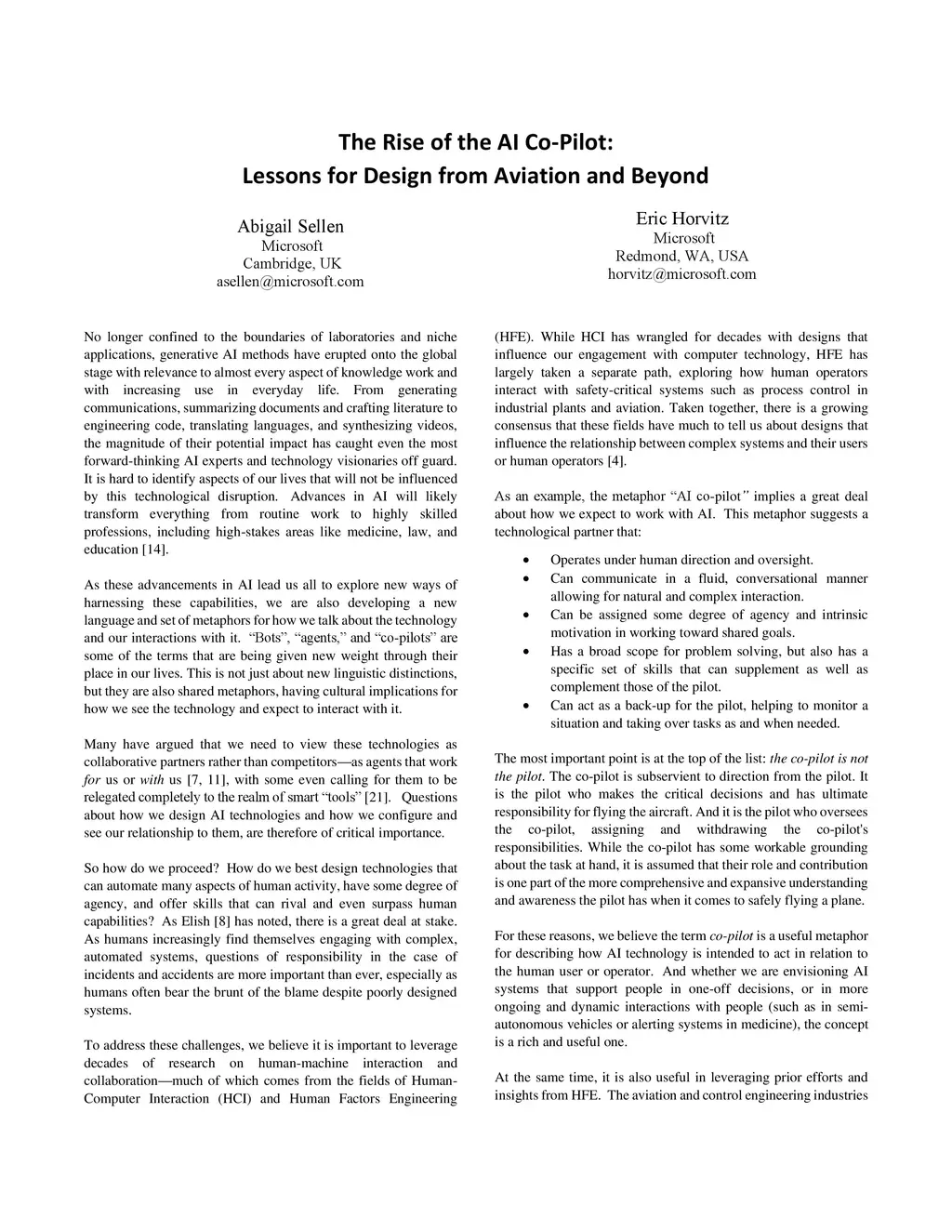 The Rise of the AI Co-Pilot: Lessons for Design from Aviation and Beyond