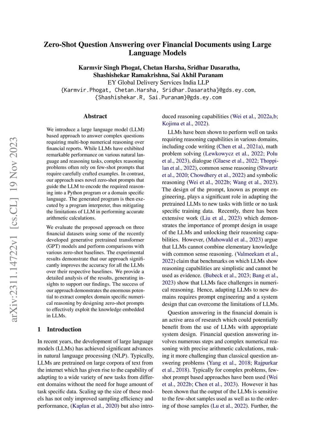Zero-Shot Question Answering over Financial Documents using Large