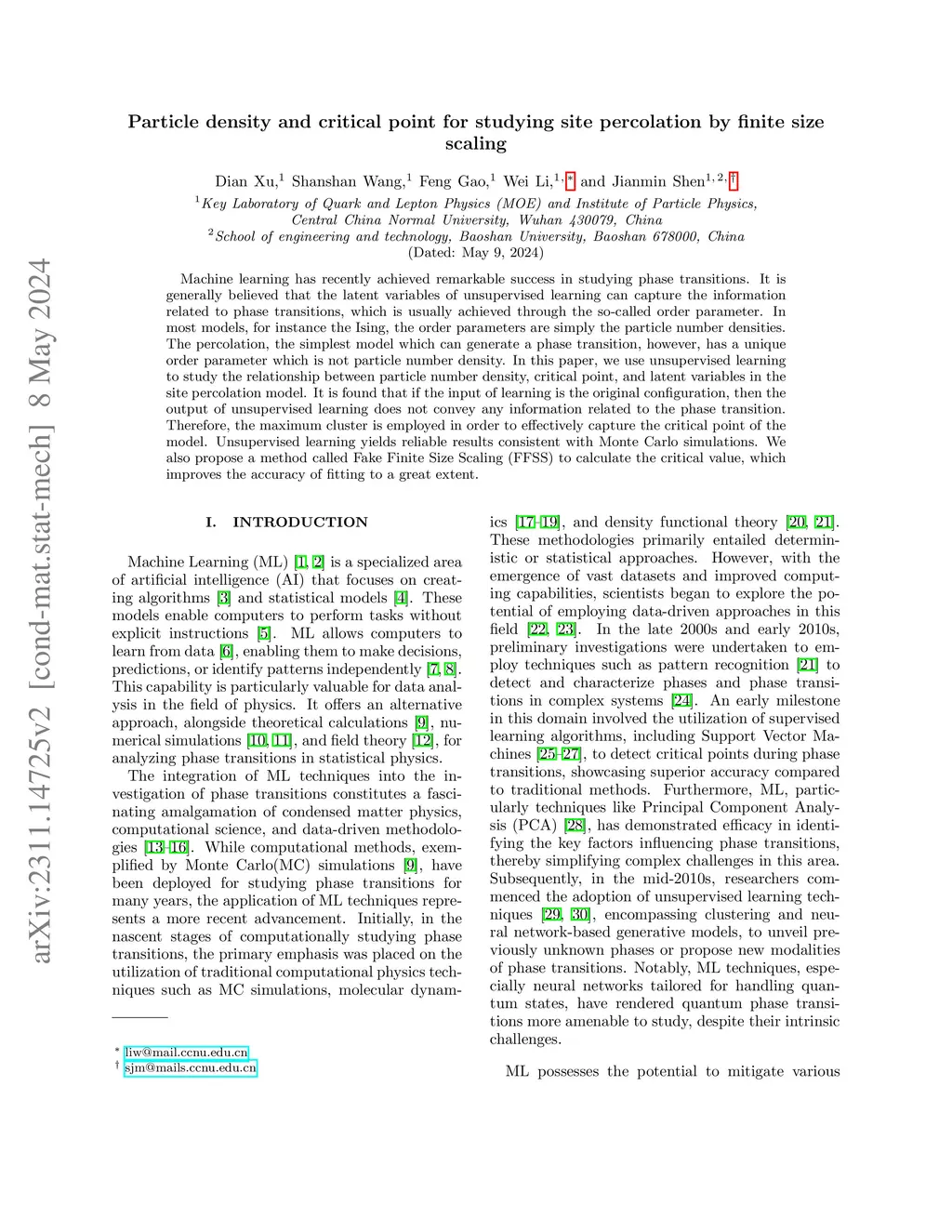 Machine learning has recently achieved remarkable success in studying phase transitions. It is generally believed that the latent variables of unsupervised learning can capture the information related to phase transitions, which is usually achieved through the so-called order parameter. In most models, for instance the Ising, the order parameters are simply the particle number densities. The percolation, the simplest model which can generate a phase transition, however, has a unique order parameter which is not particle number density. In this paper, we use unsupervised learning to study the relationship between particle number density, critical point, and latent variables in the site percolation model. It is found that if the input of learning is the original configuration, then the output of unsupervised learning does not convey any information related to the phase transition. Therefore, the maximum cluster is employed in order to effectively capture the critical point of the model. Unsupervised learning yields reliable results consistent with Monte Carlo simulations. We also propose a method called Fake Finite Size Scaling (FFSS) to calculate the critical value, which improves the accuracy of fitting to a great extent.