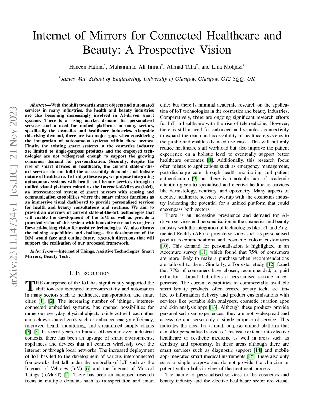 Internet of Mirrors for Connected Healthcare and Beauty: A Prospective